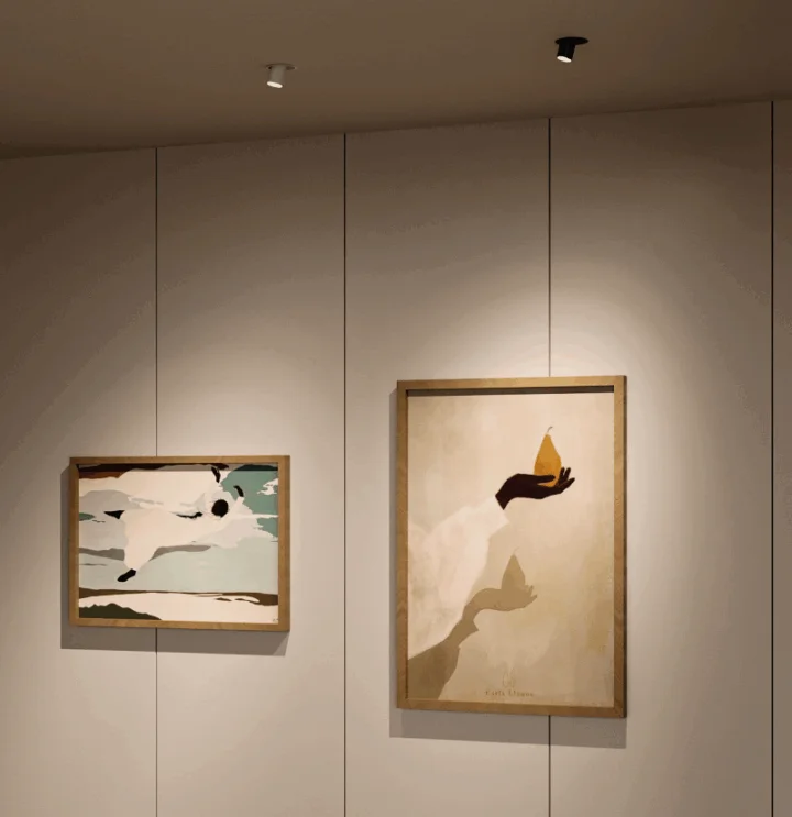 For museums and galleries, directional and controllable lighting is recommended, achieved by LED track lights or adjustable projectors. These allow the precise orientation of the light beam on the exhibits, without damaging sensitive materials. Ideally, the light should have a CRI above 90, without UV or IR radiation.