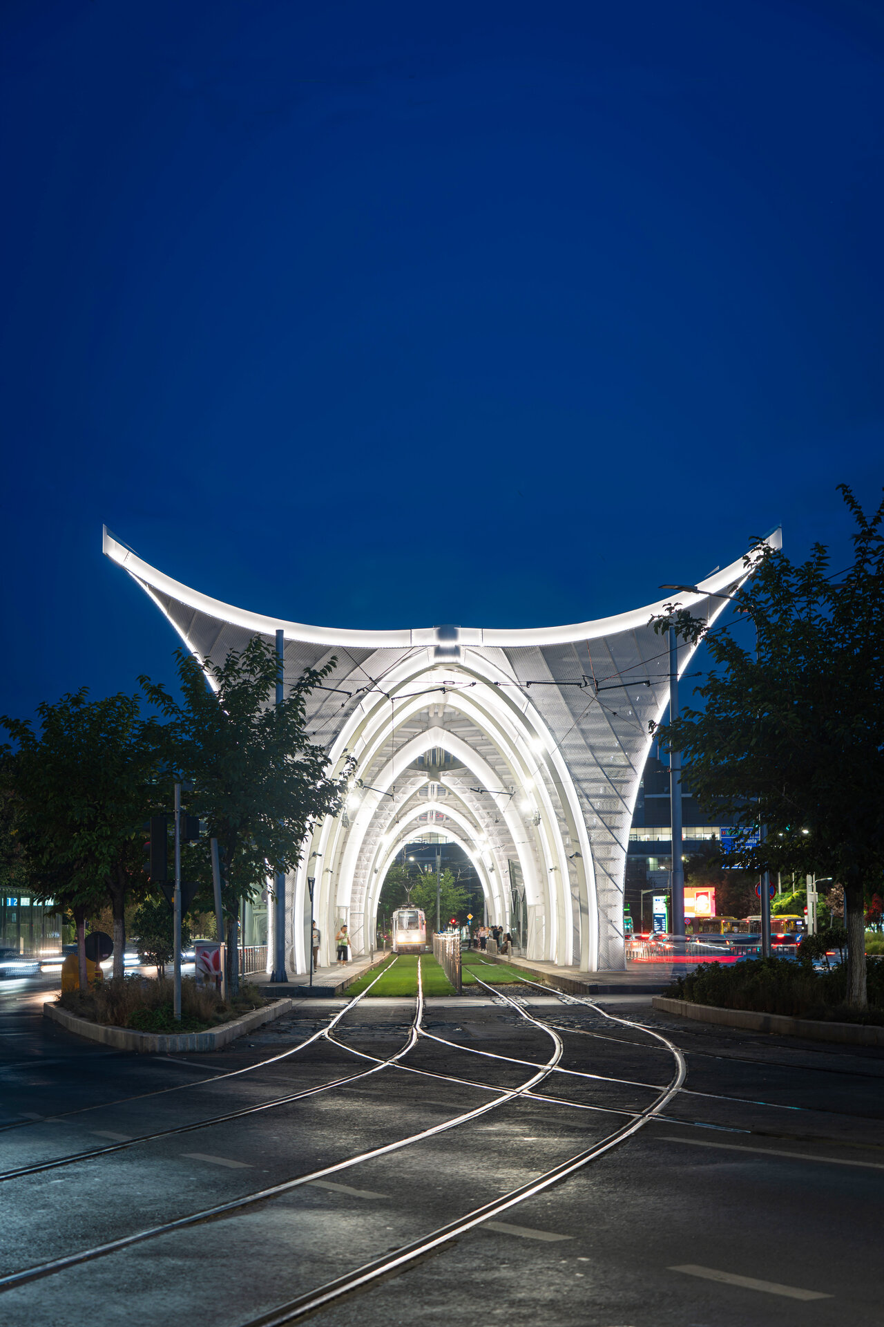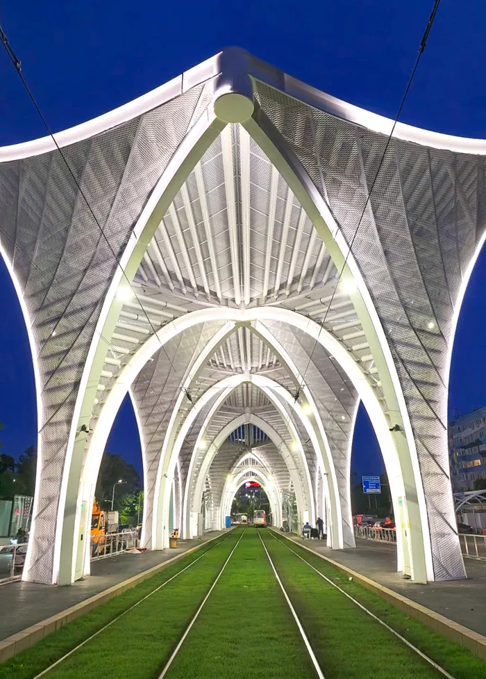 Iluminatul peronului este conceput ca un strat coerent și autonom. Funcționează în complementaritate cu iluminarea structurii metalice, fără a o dubla sau concura vizual.